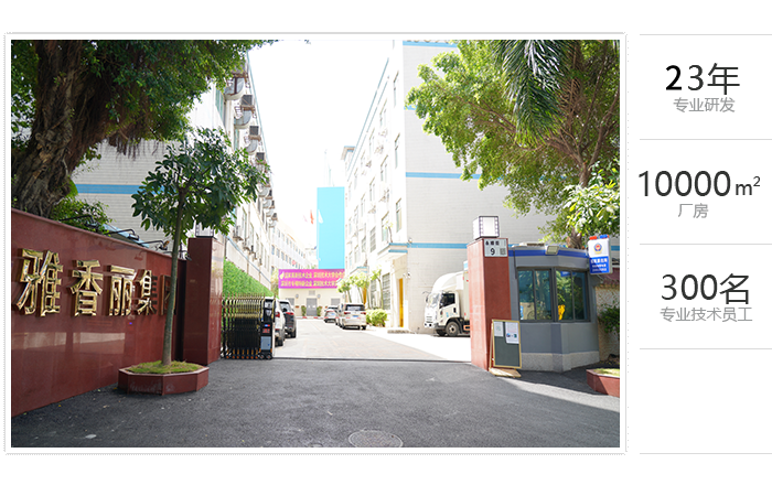 占地面積一萬余平方米,專業(yè)技術(shù)員工300余人,雅香麗憑借著在行業(yè)內(nèi)的專業(yè)化、精細化、特色化、新穎化、可持續(xù)化,榮獲國家"高新技術(shù)企業(yè)"、"深圳市專精特新中小企業(yè)"等重量級認(rèn)證。